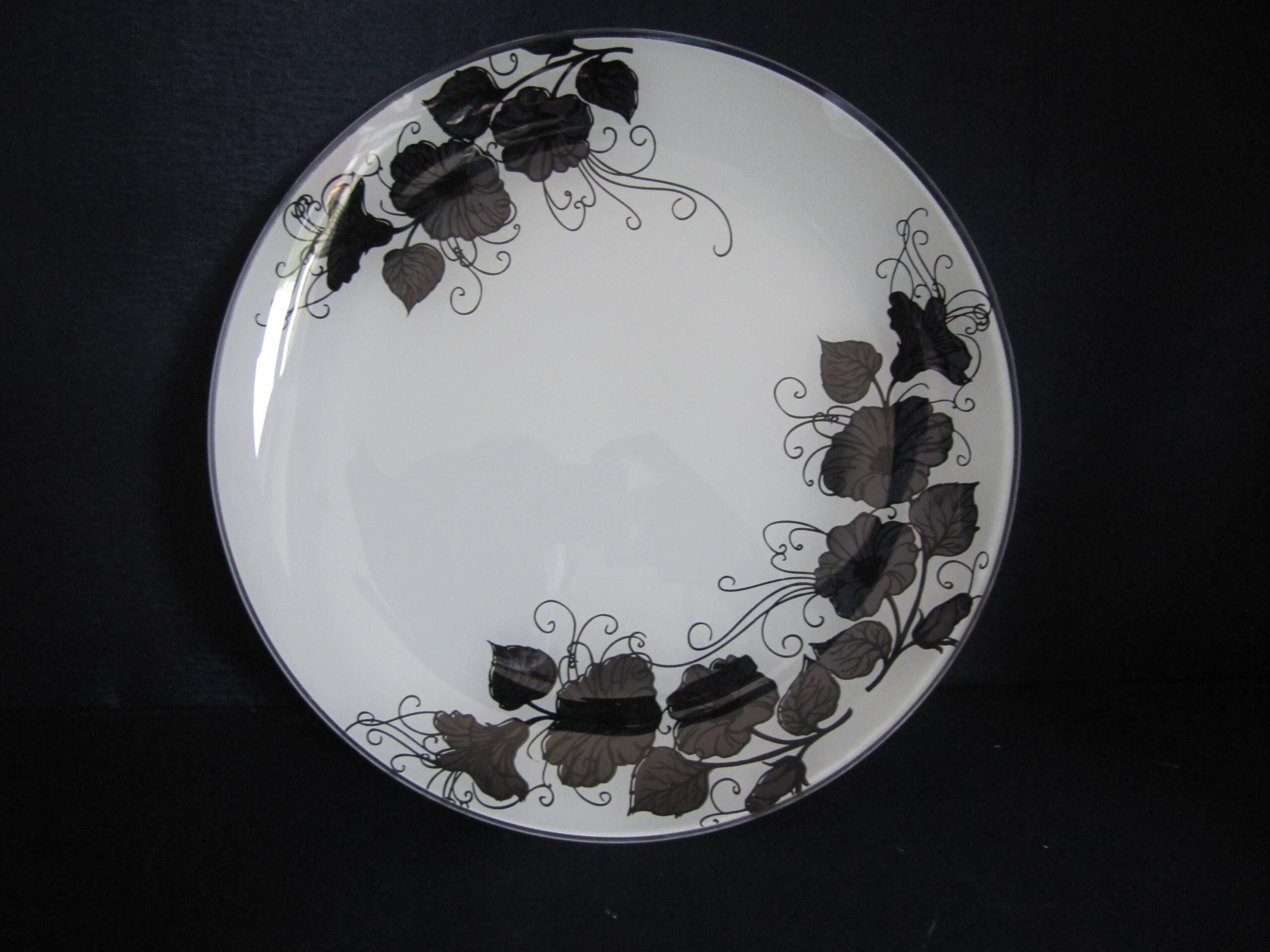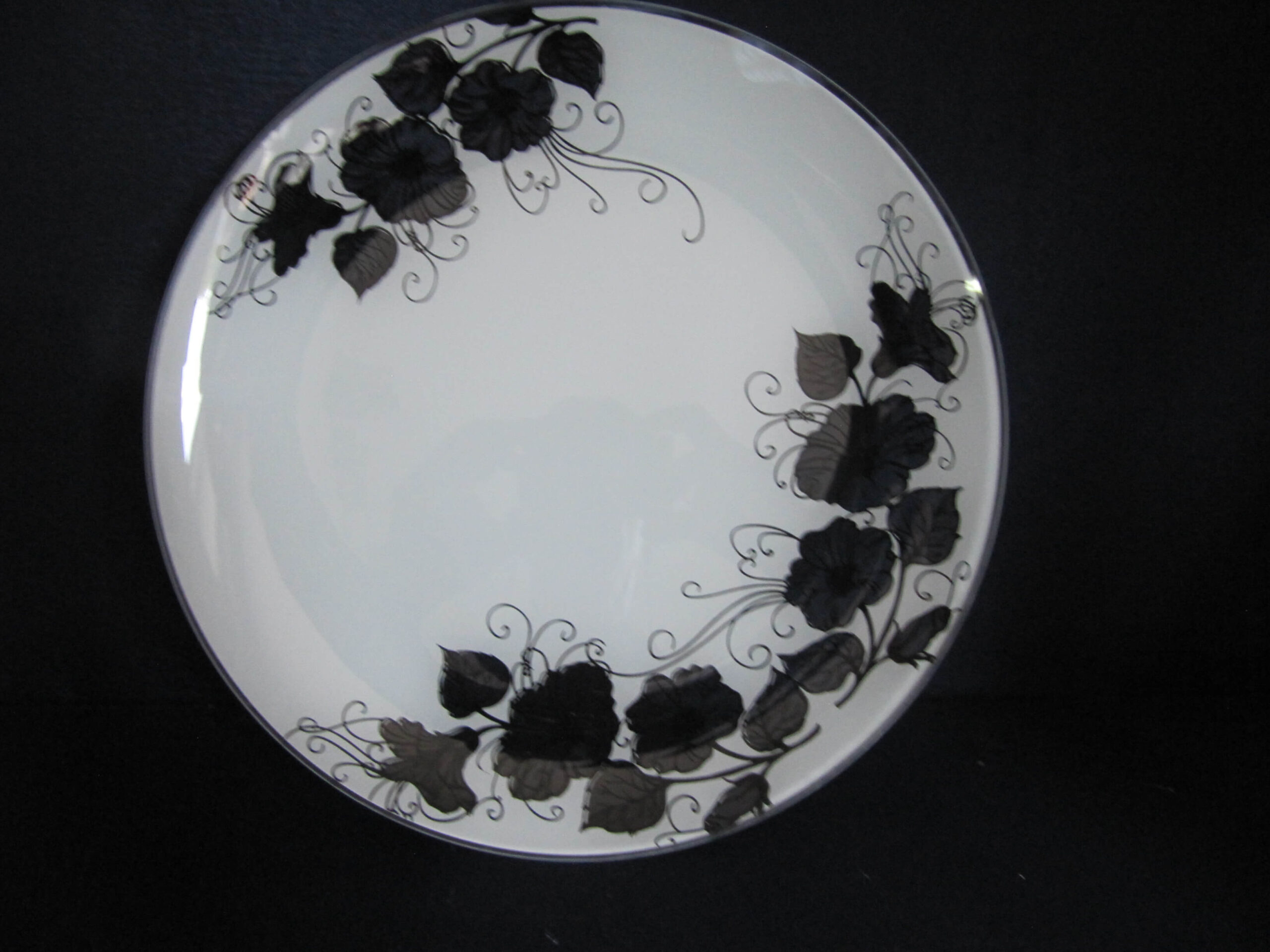 Тарелка декоративная подарочная круглая, из двухцветного моллированного стекла, декорирована, цветовой фон черно-белый