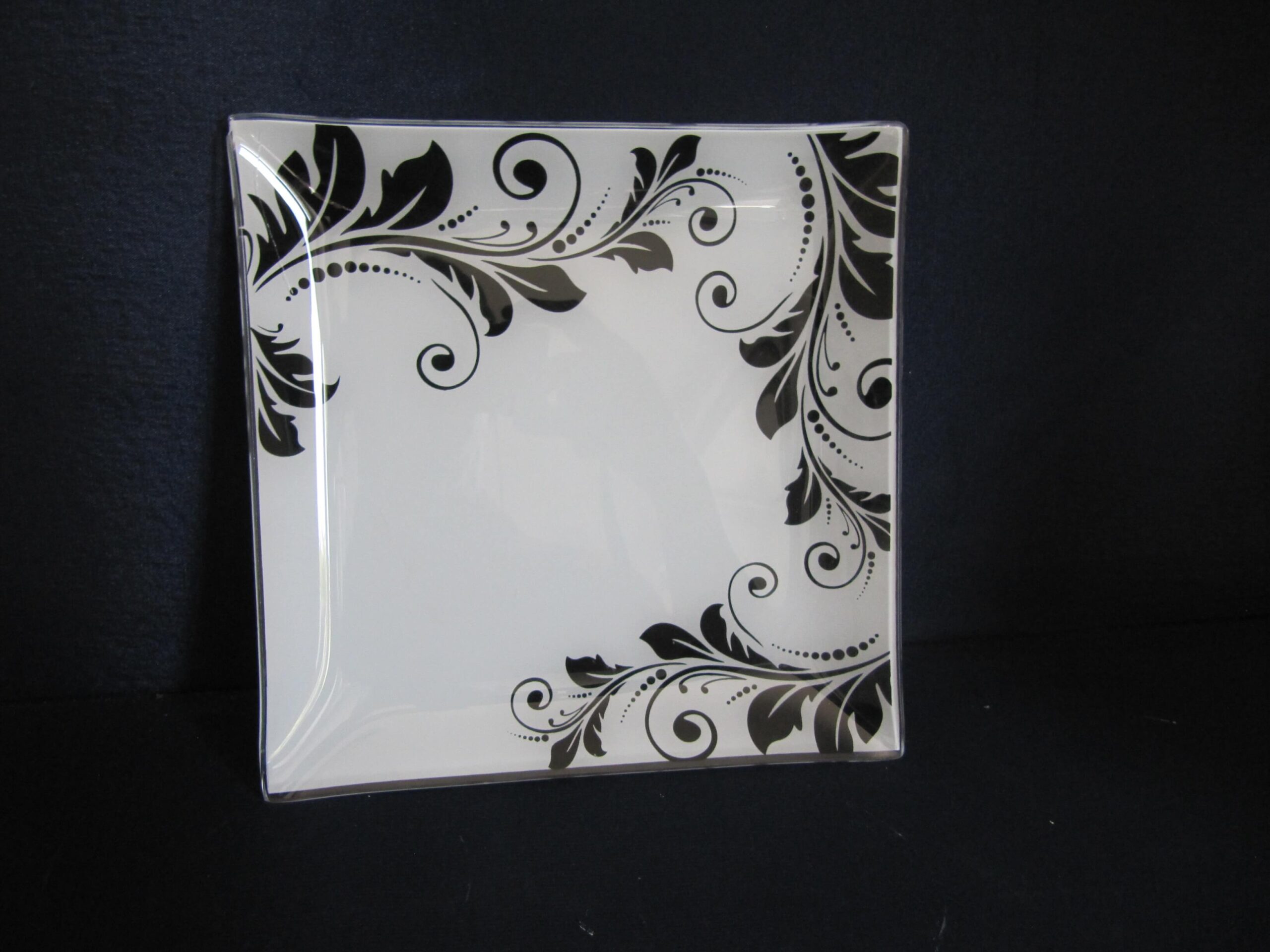 Тарелка декоративная подарочная квадратная, из бесцветного моллированного стекла, декорирована.